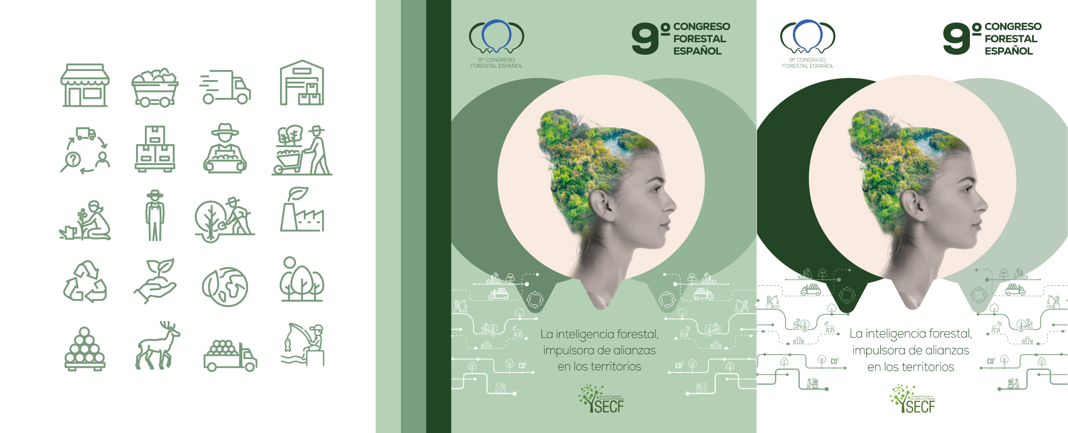 La sociedad Española de Ciencias Forestales necesitaba una imagen visual potente y contemporánea para el IX Congreso Forestal Español, un encuentro de referencia para profesionales, empresas e instituciones del sector. El reto era traducir el claim “La inteligencia forestal impulsora de alianzas en los territorios” en una identidad gráfica moderna y sugerente, capaz de conectar la esencia del bosque con la innovación y las nuevas tecnologías, manteniendo a la vez un tono inspirador y accesible al público general.