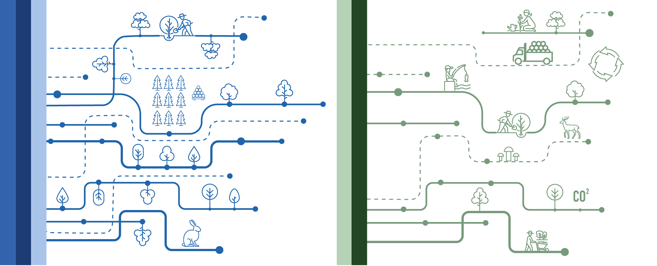 La propuesta final representó a una figura femenina —símbolo de la Madre Tierra— con cabello transformado en bosques y lagos, del que emergen caminos que conectan con distintos iconos del sector forestal: la gestión sostenible, la recolección, la colaboración o el uso de tecnologías.