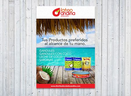 Cartel Publicitario para la empresa Distribuidora Andina, desarrollado para la promoción de los productos para dominicanos más relevantes, entre otro productos que distribuye la empresa.